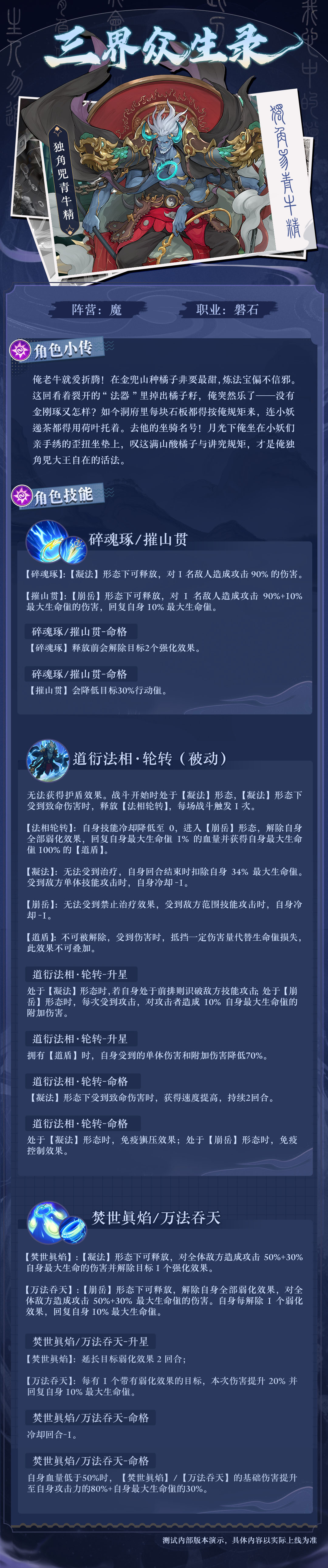 狂兕点兵,不拜仙庭。10月31日2.2(上)新版本「兜率青兕」即将上线,全新星辰磐石角色「独角兕青牛精(魔)」登场!